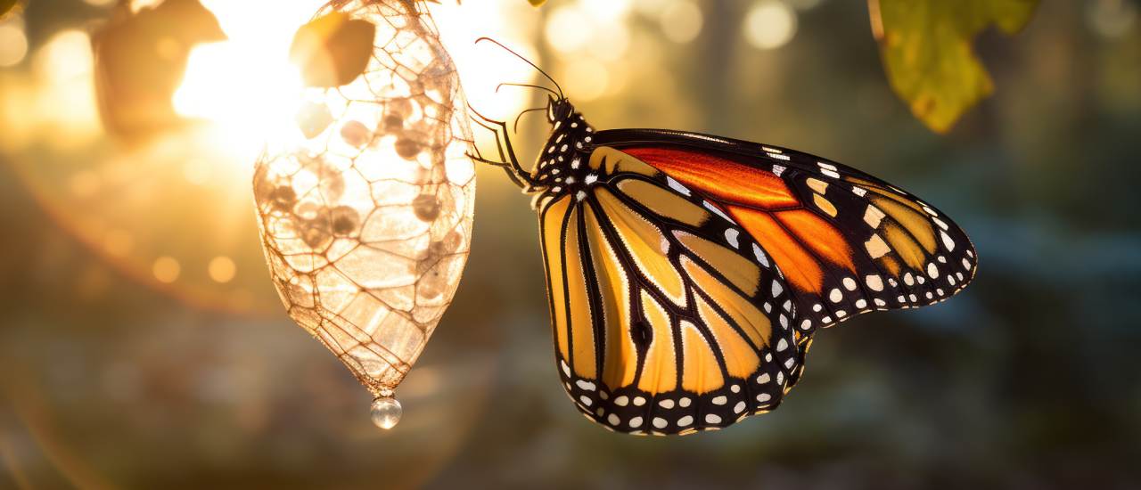 Der Schmetterling war schon immer in der Raupe angelegt, doch er war nicht immer durch das Raupendasein und dessen Wahrheit zu erfassen und zu leben. Ohne die Entwicklungsstadien der Raupe wäre er niemals ein Schmetterling geworden. Erst das Hinterfragen, Loslassen und Sterbenlassen von Erlerntem und Übernommenen sowie der Mut, in diesen Prozess einzutreten, ließen ihn zum Schmetterling werden.
